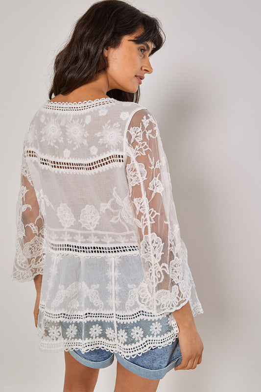 Tribal Knit Eyelash Crew Neck Polka-Dot Sweater