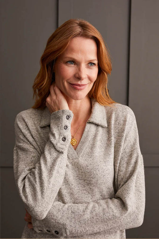 Tribal Knit Eyelash Crew Neck Polka-Dot Sweater
