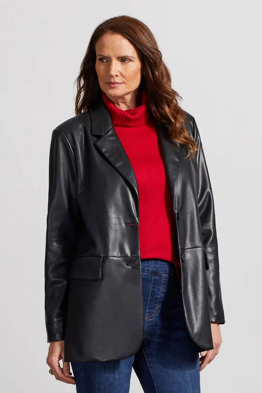 Tribal Vegan Leather Lapel Collar Blazer