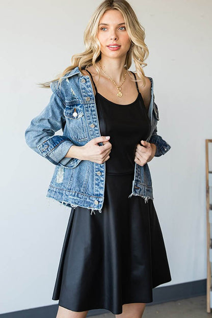 Re-define skater girl in this fun and flirty dress made from the fabulous faux leather all the real ones are wearing.
