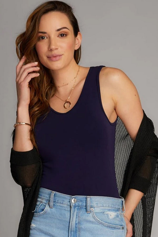 Thick Straps and a scoop neck on both sides makes this style our most bra-friendly tank in the bamboo collection
