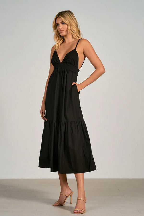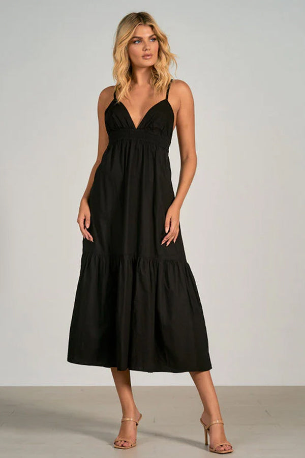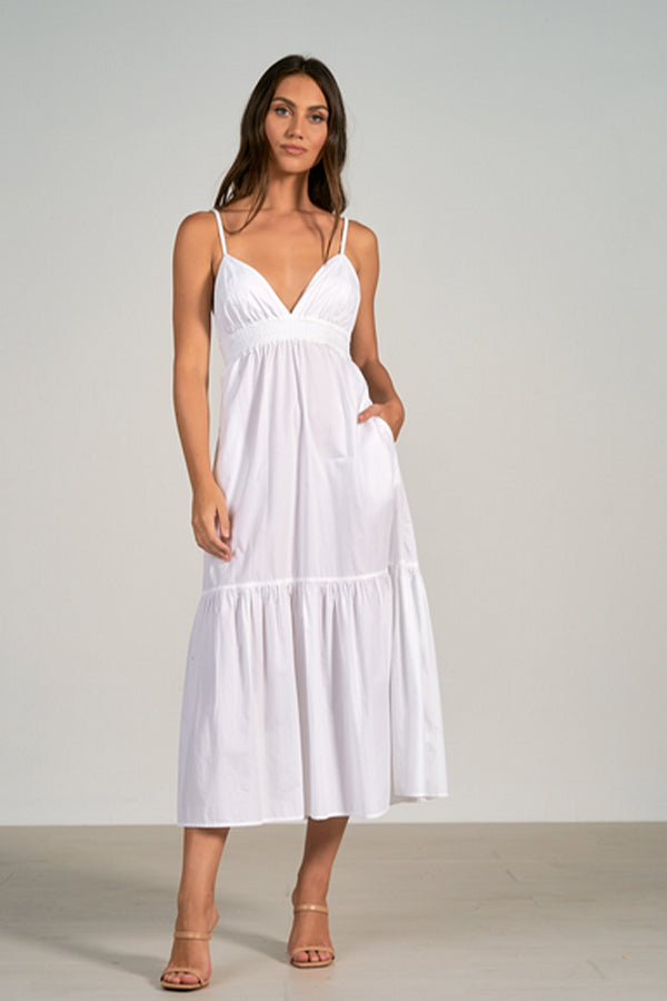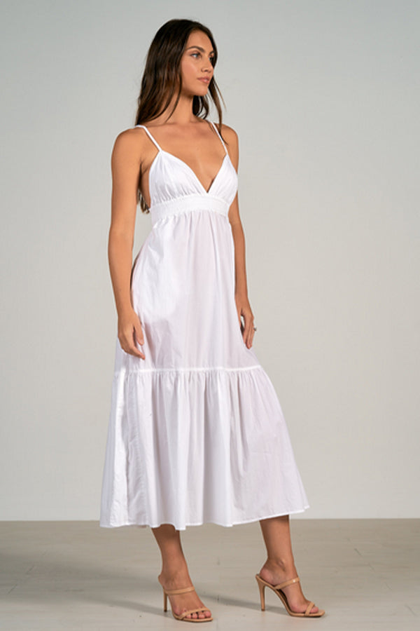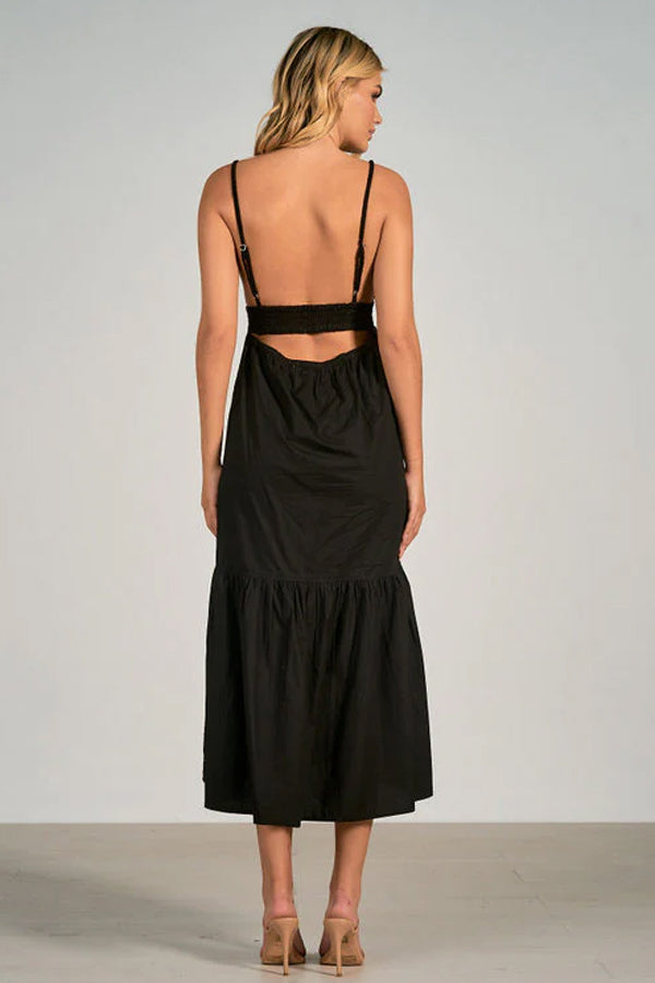 A lovely max dress for day to night. Made with a sweetheart bralette with a low exposed back and a soft bottom ruffle hem. Made in our soft all-cotton material for an easy, breathable fit.
