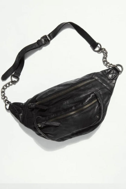 Pack up all the essentials in this effortlessly cool sling bag featured in a buttery soft leather and slouchy silhouette with a worn-in finish and exposed zippers.