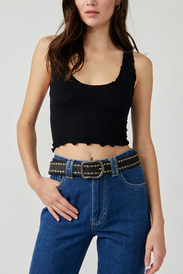 Soft with plenty of stretch, this lovely cami top features textured details on a cropped, classic scoop neck tank silhouette.