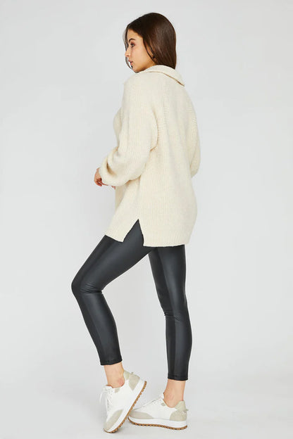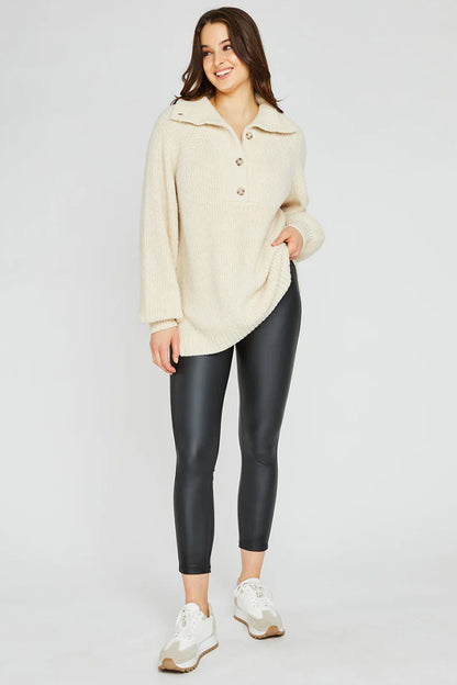 The Alden sweater is made of a soft, airy yarn and features a functional button placket and side slits. The effortless silhouette is perfect for everyday wear.