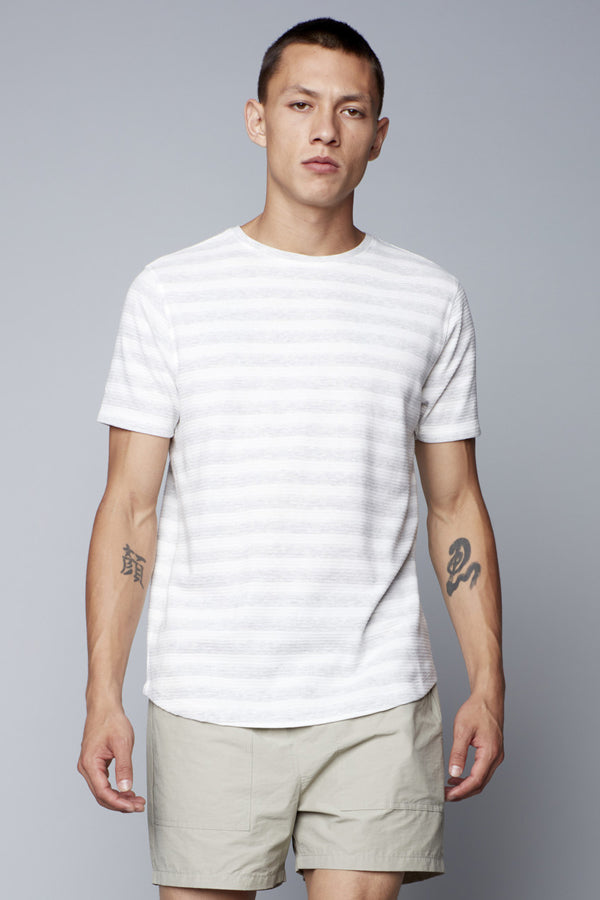 This variegated rib tee is made in a soft blend of cotton and polyester and fashioned in a trendy relaxed fit.