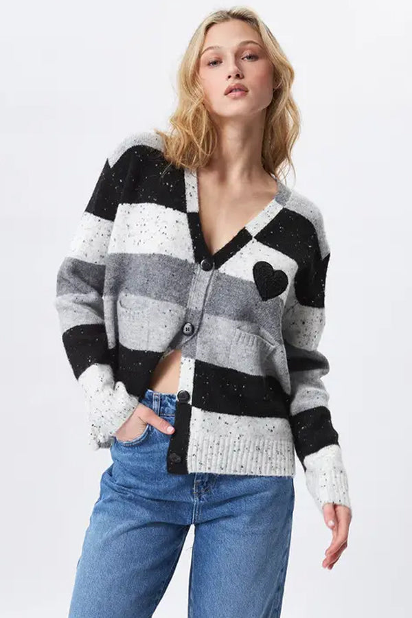 The Stewart is a multi-panel essential with detailing of patchwork to elevate a cardigan. A staple you'll wear time and again, the Stewart Heart Cardigan features a timeless silhouette in a neutral shade that will go with any look.