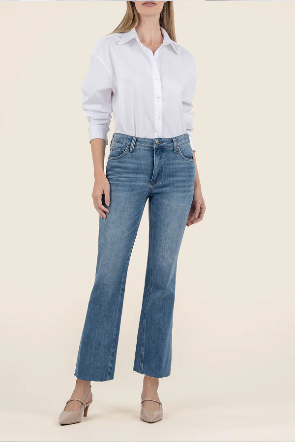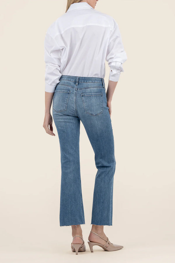 Classic and casual-chic, these ankle-cropped flares jeans are made from premium stretch denim and faded for a lived-in look with our fab ab front pockets that smooth and add comfort.