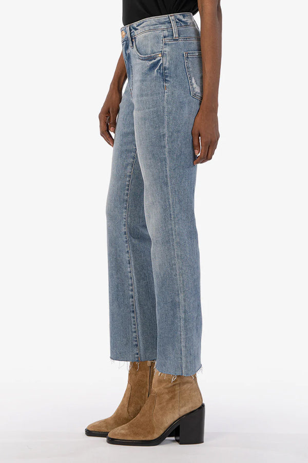 - Size & Fit: Inseam: 27", Leg Opening: 17 1/2", Rise: 10 1/4, Silhouette: Crop