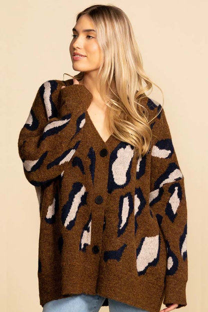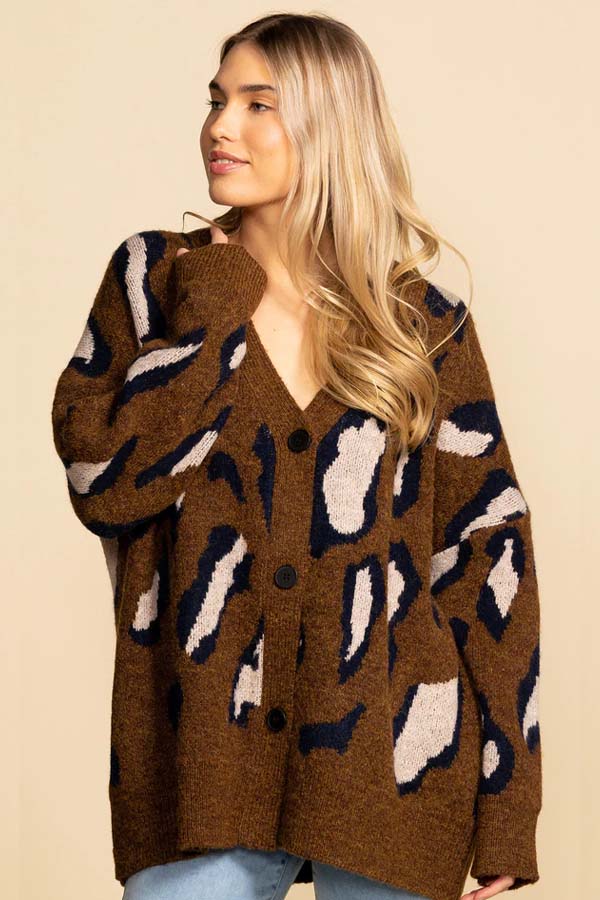 This wildly chic animal print cardigan elevates whatever you pair it with from skinny jeans to joggers to a black sheath dress! We love the cool tones and multi texture knits.