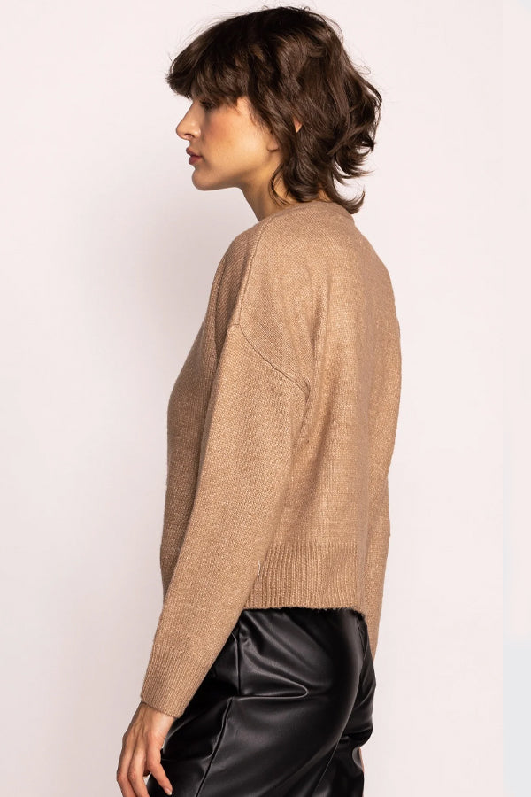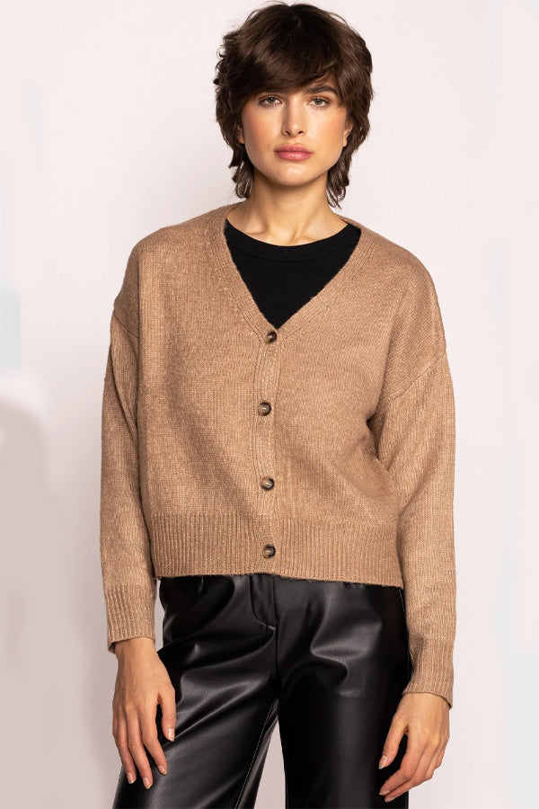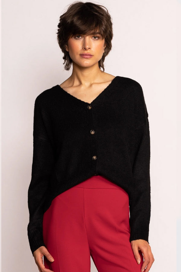 A relaxed fit sweater for all day comfort and style. With its large buttons and deep v neck, this is a super comfortable top great for lazy days at home or getting things done.