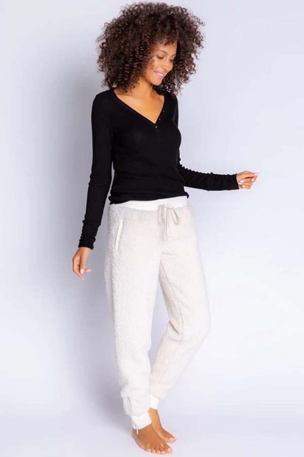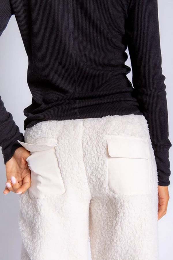 The furriest faux shearling pant to keep the chill away. A great piece to cuddle up by the fire on chilly nights.