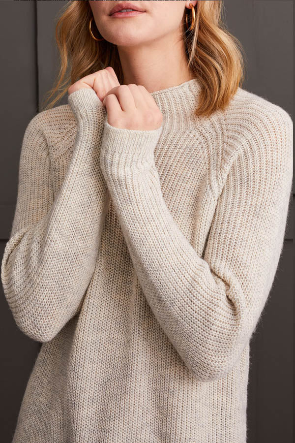 Elevate your wardrobe with this mock neck tunic sweater, distinguished by extra-long side slits that impart an airy, effortlessly flowing silhouette. Long raglan sleeves complement its flattering shape, while the heathered knit fabric not only visually captivates but also ensures luxurious comfort. Enjoy a blend of style and ease with every wear.