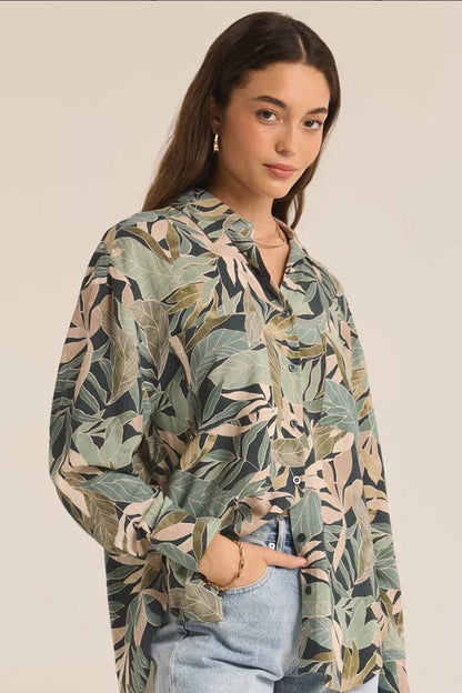 Turn heads in this effortlessly cool button-up made from our airy viscose that's even softer than rayon. Our bold new print makes a statement and the rounded hem is ultra flattering. Wear tucked or untucked for the perfect elevated look.