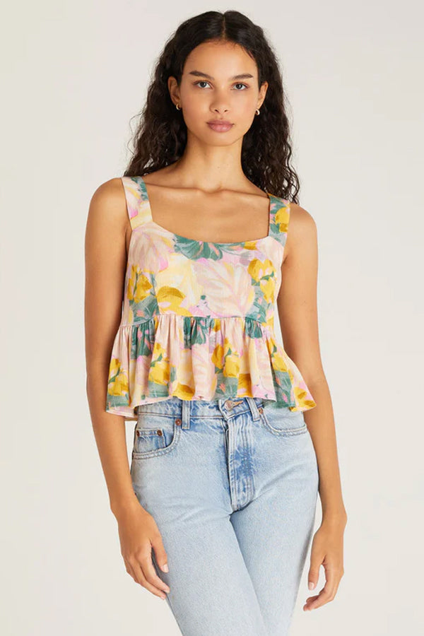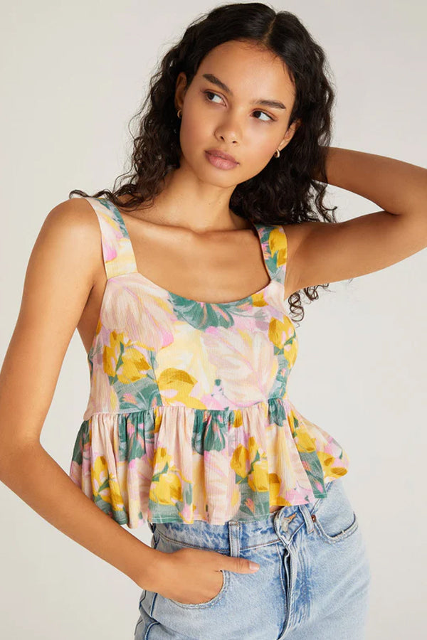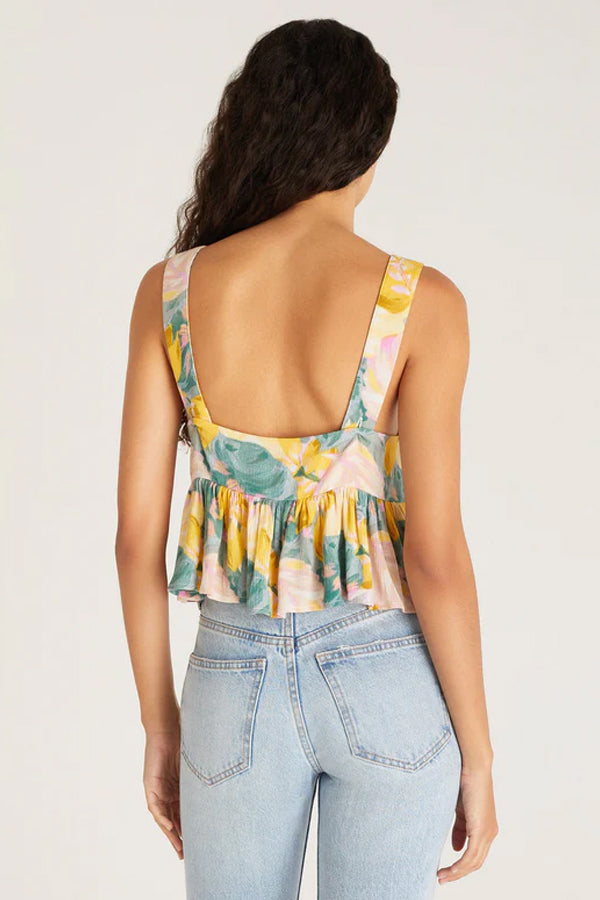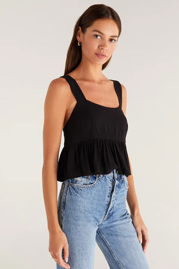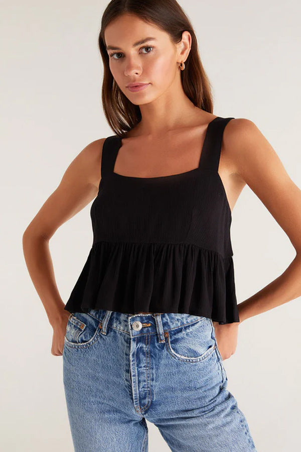 Made using airy Crinkle Rayon fabric, this cropped and cute statement piece features adjustable straps with buttons in the back, and ruffles below the bust.