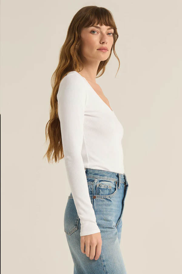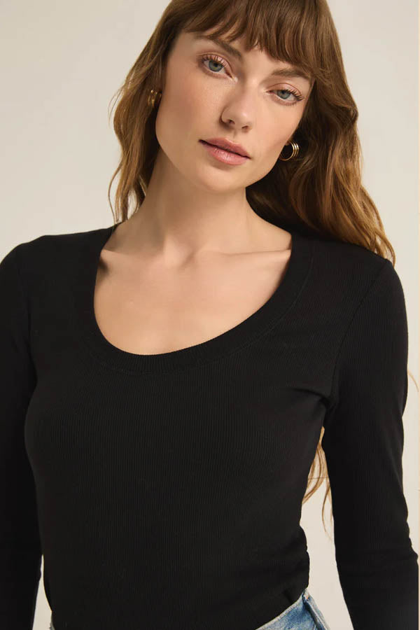 It's all sleek lines and elevated feels with the Sirena Rib Long Sleeve Tee. This perfect fitted layering piece can be worn with anything, tucked or untucked.